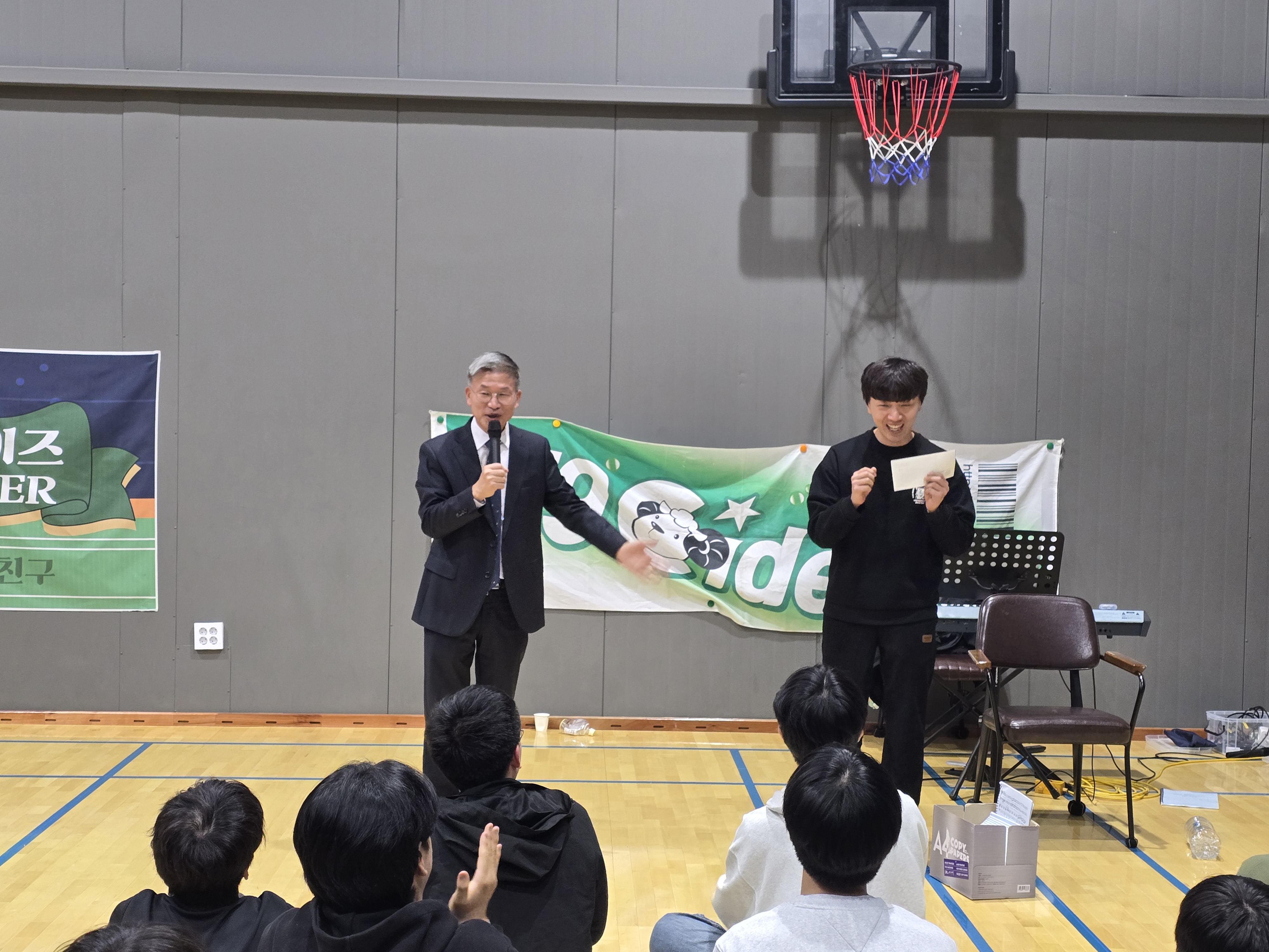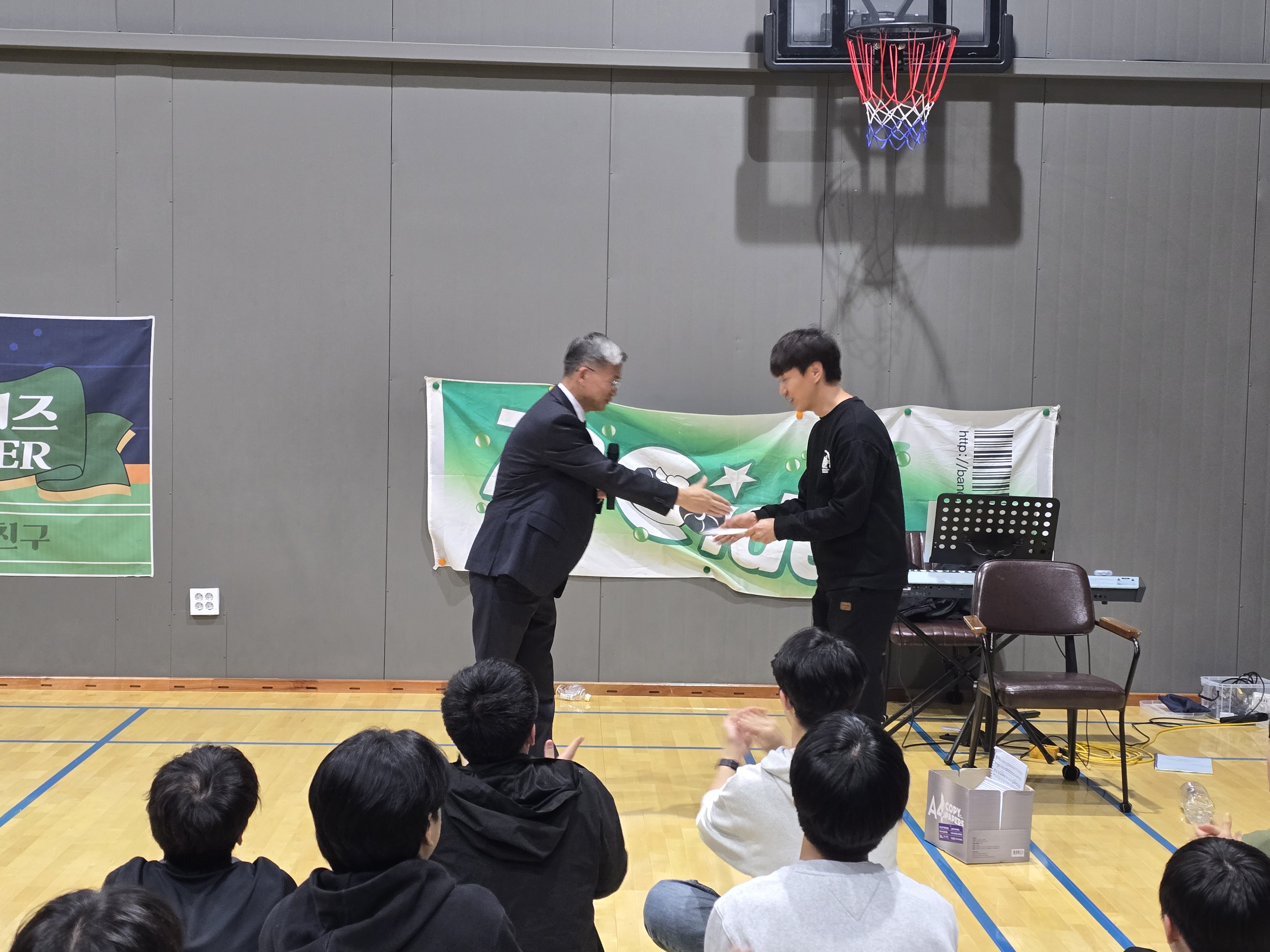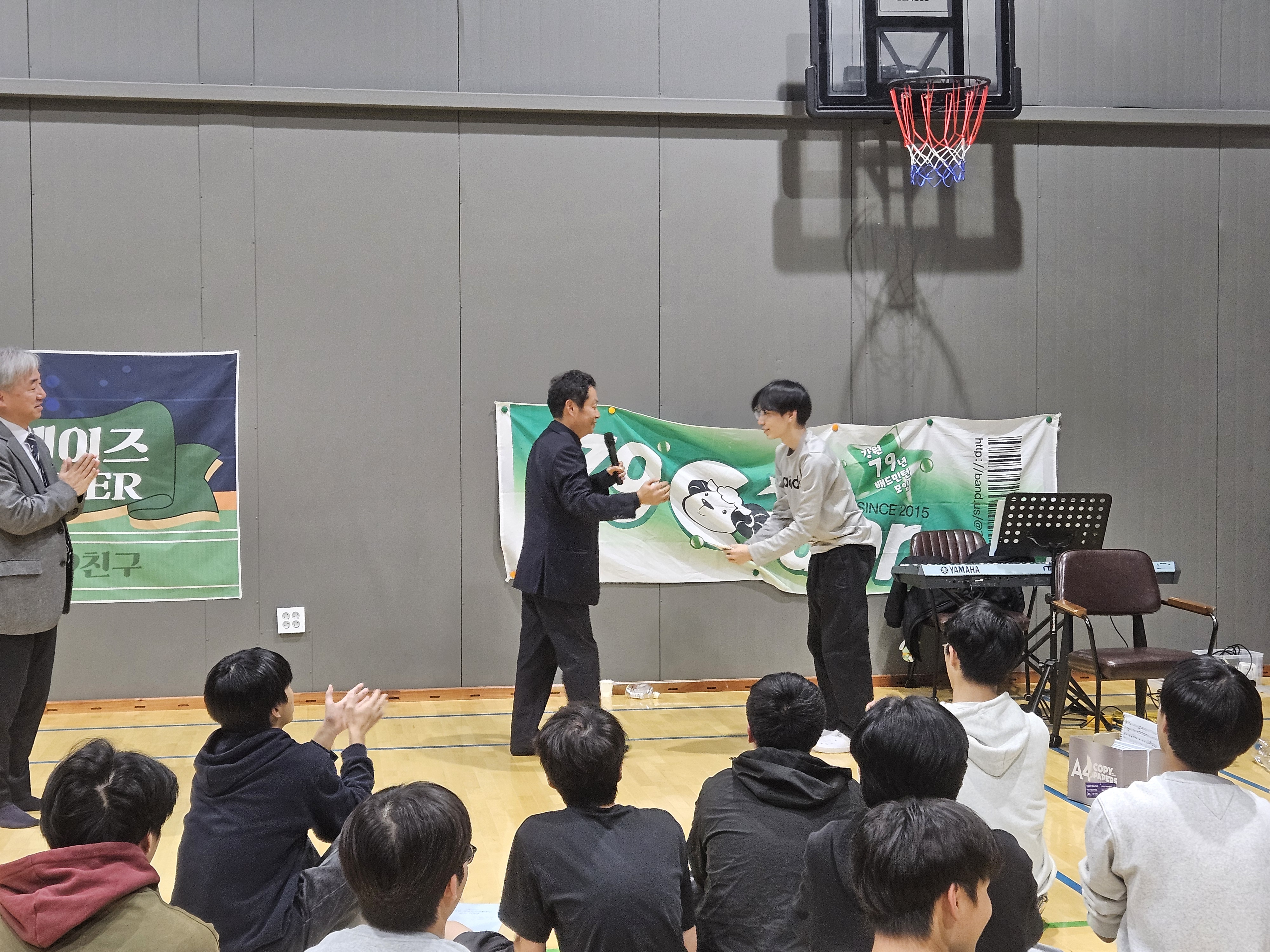 뫼울림 단장님이 45기(고2) 기장에게 격려금 전달