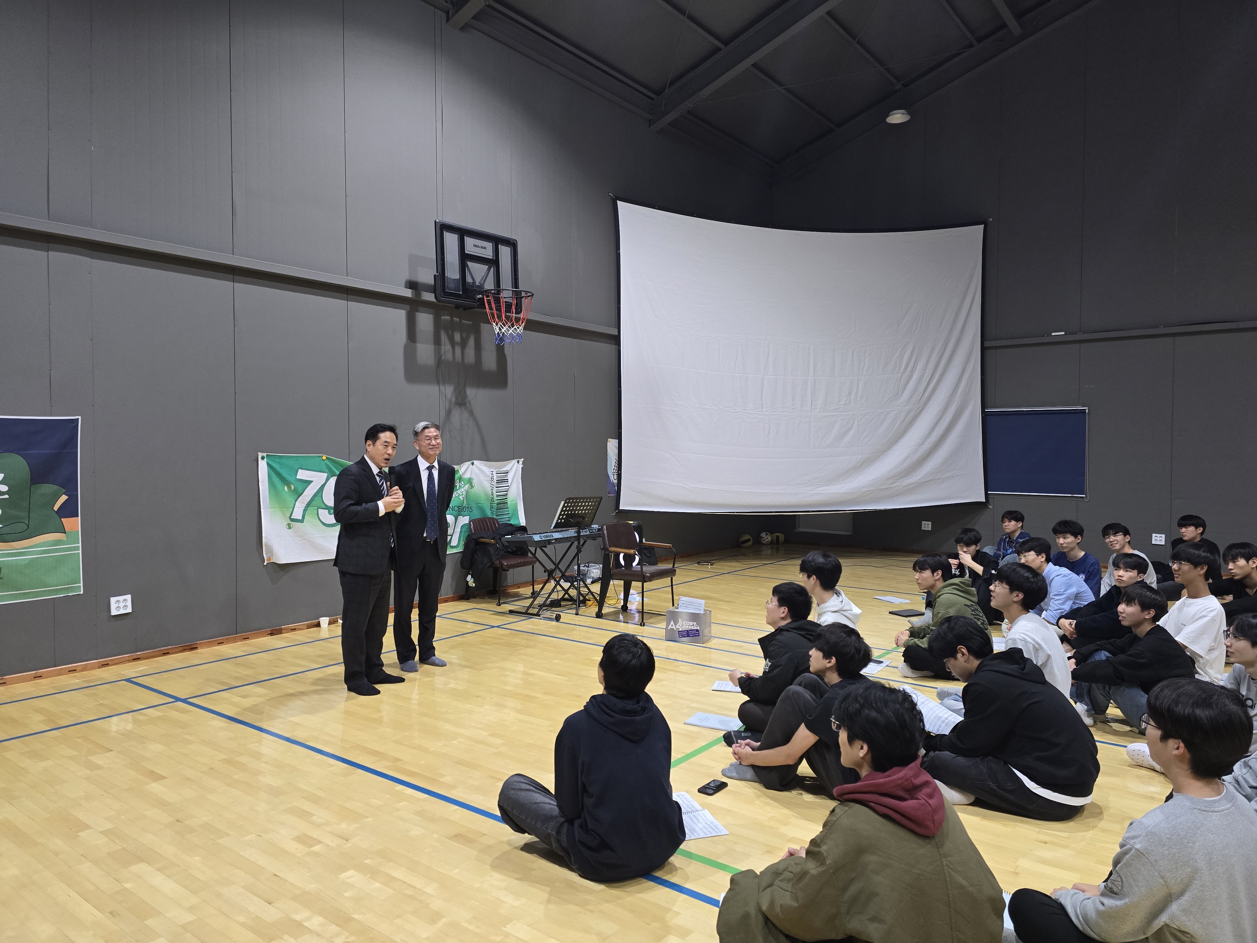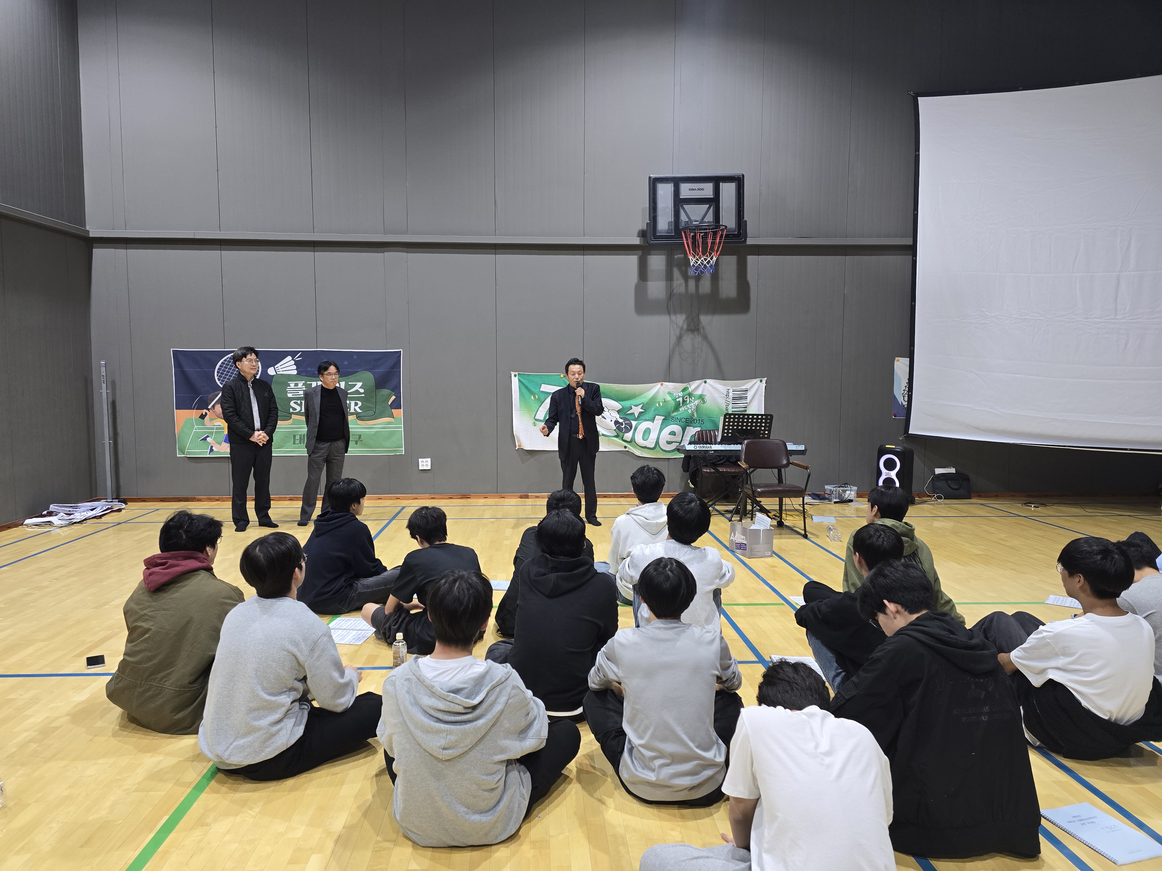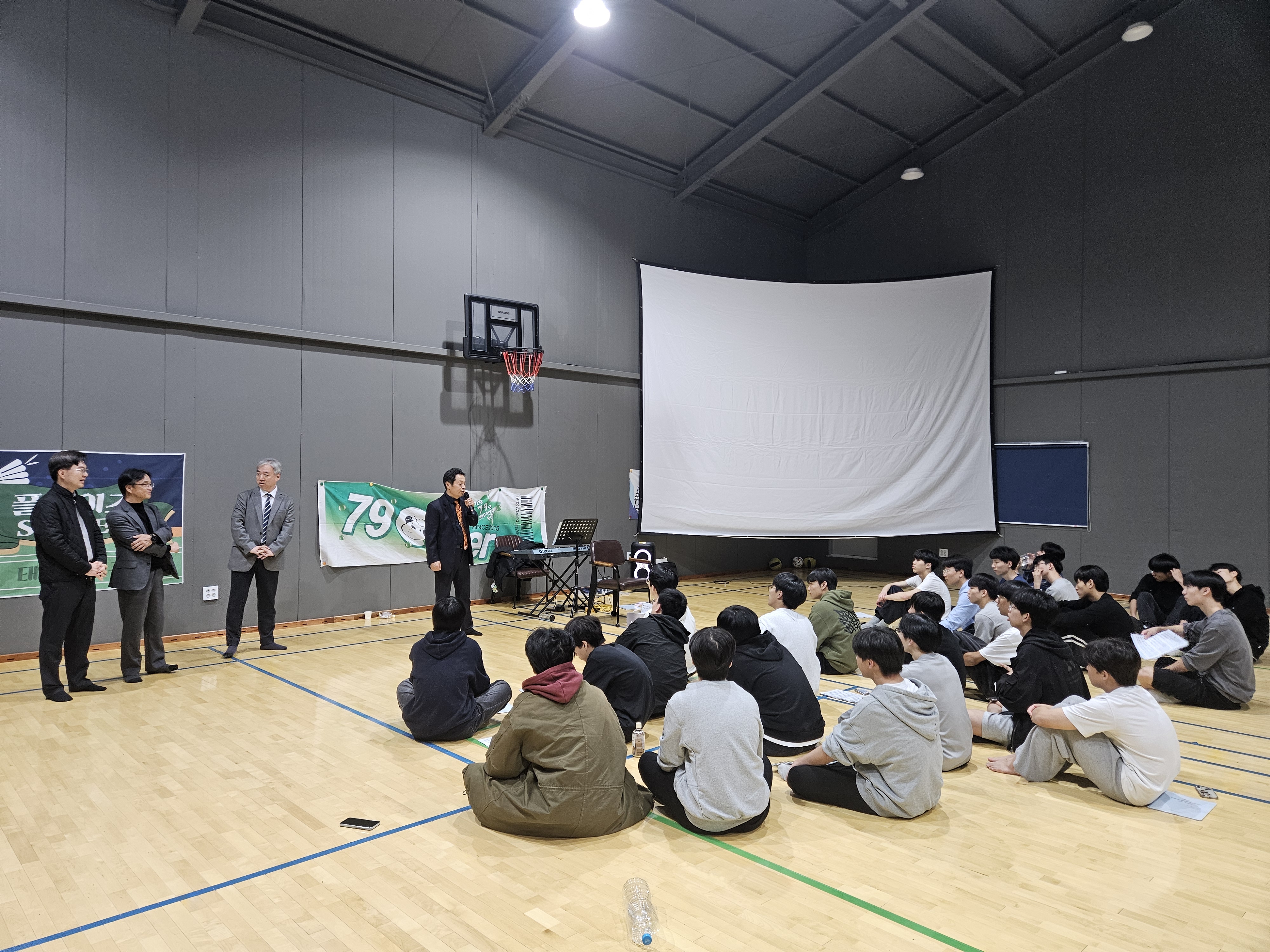 뫼울림 단장님이 45기(고2) 기장에게 격려금 전달